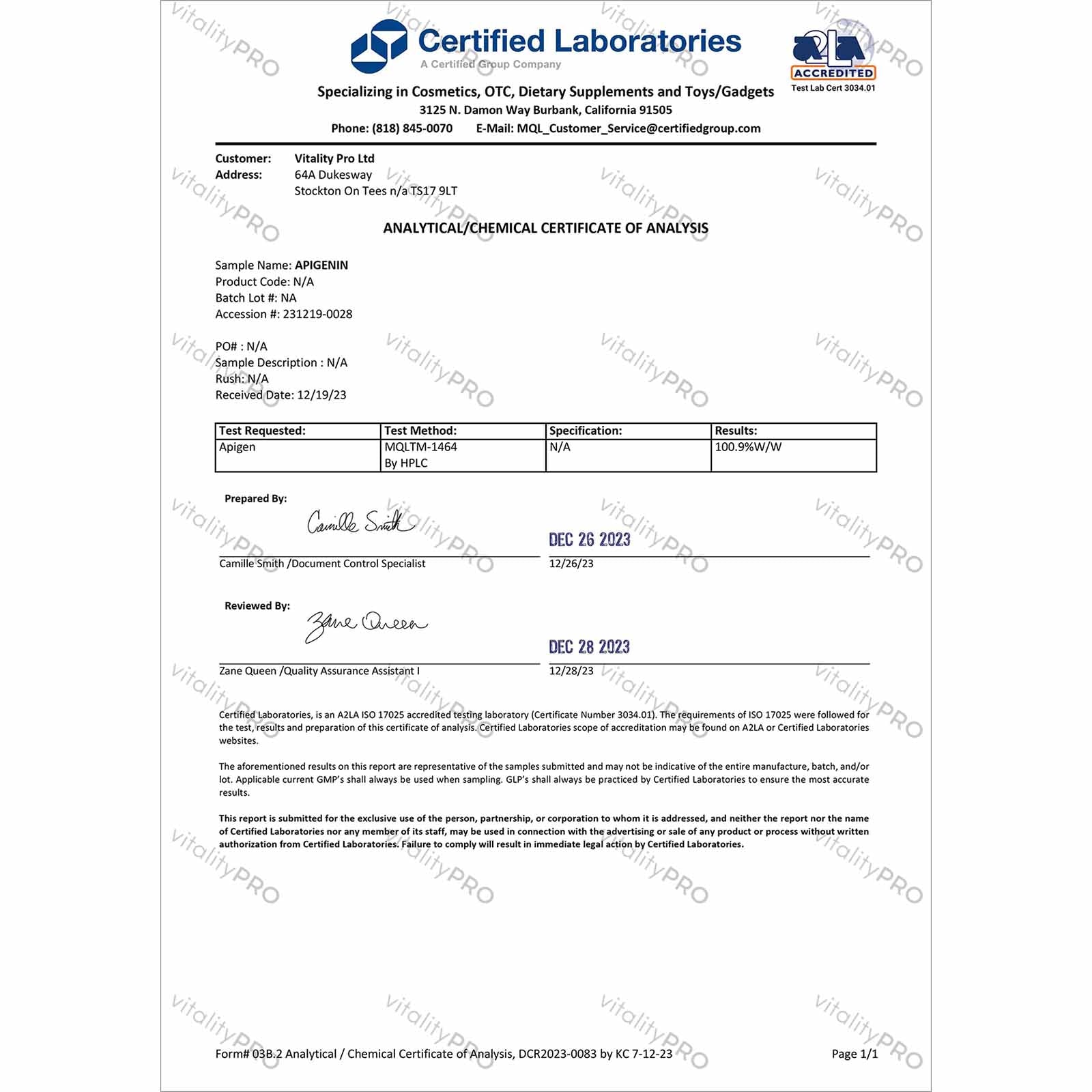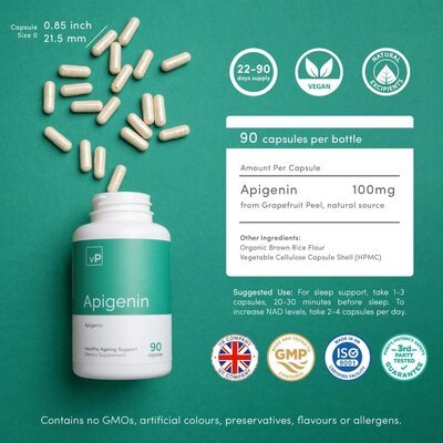 Η απιγενίνη είναι ένα φυσικό φλαβονοειδές που βρίσκεται σε πολλά φυτικά τρόφιμα. Διαθέτει αντιφλεγμονώδεις και αντιοξειδωτικές ιδιότητες.