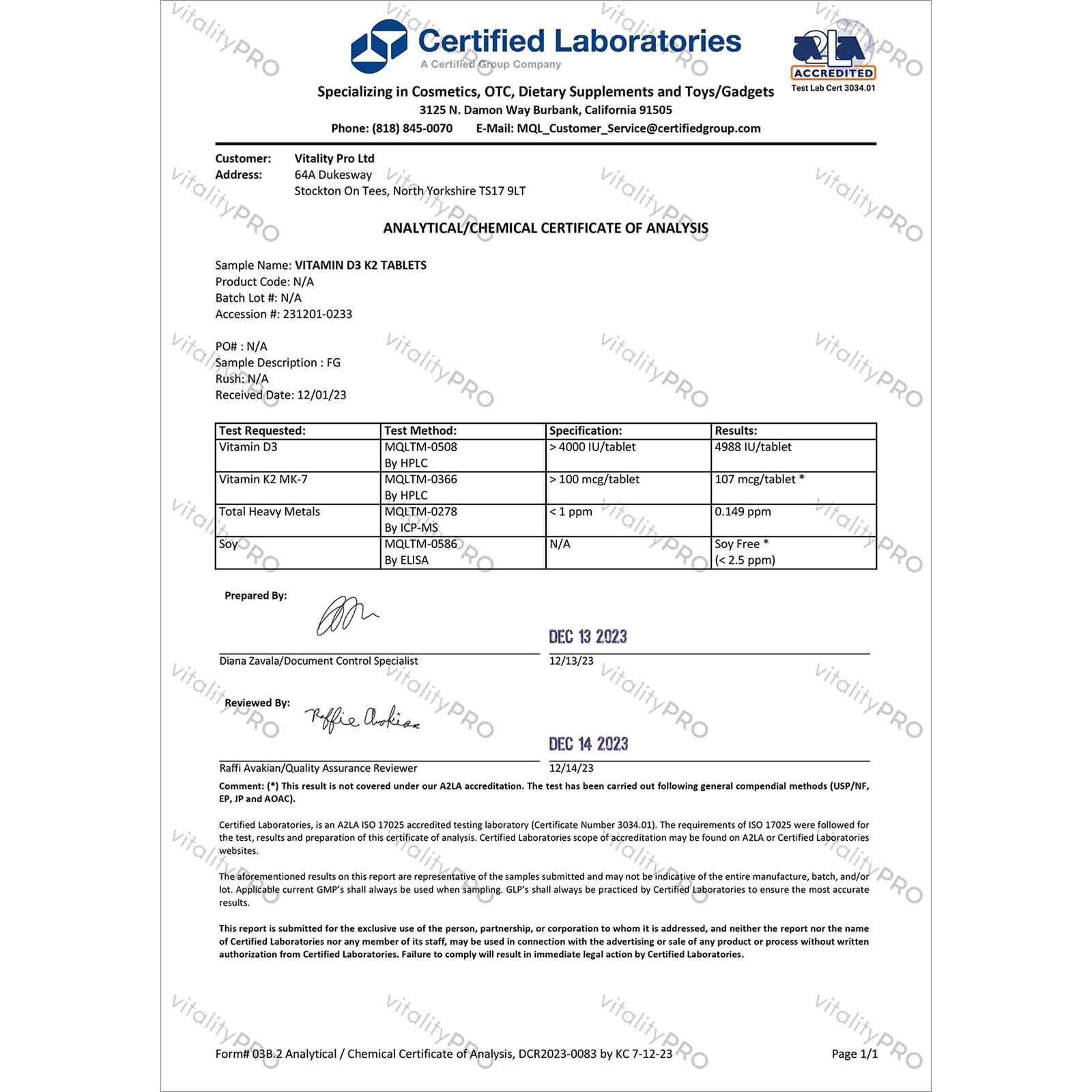 Ο συνδυασμός βιταμινών D3 και K2 (MK-7) είναι εξαιρετικός· η βιταμίνη D απορροφά το ασβέστιο στον οργανισμό, ενώ η βιταμίνη K το κατευθύνει προς τα οστά. Αυτό έχει ως αποτέλεσμα ένα καθαρό κυκλοφορικό σύστημα και πιο δυνατά οστά.